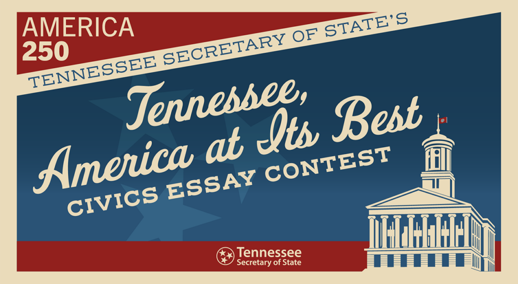 (NASHVILLE, Tenn.) – In celebration of the United States’ 250-year anniversary, Tennessee Secretary of State Tre Hargett today announced the 2026 Civics Essay Contest and theme for K-12 students: “Tennessee, America at Its Best.”