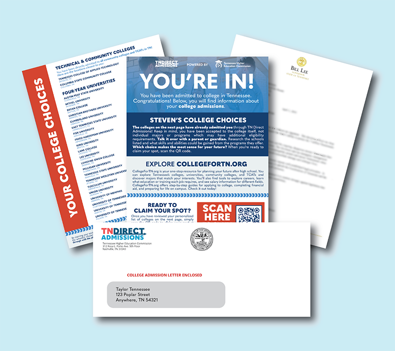 Eligible students can expect to receive their TN Direct Admissions letters this week in mailboxes across the state, giving them a clear picture of where they have automatically been admitted to college — with no traditional college application required.