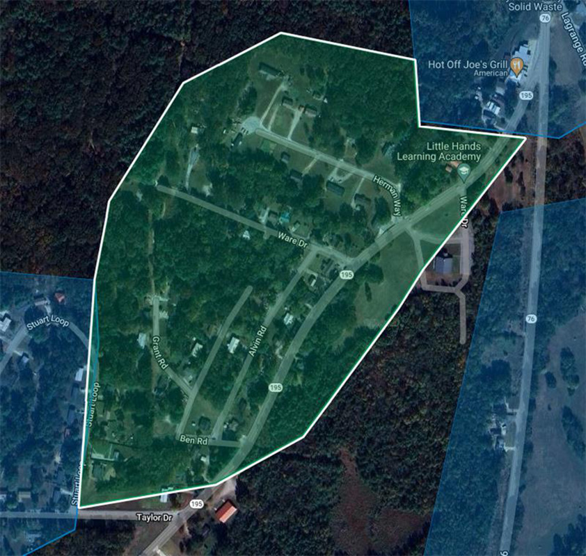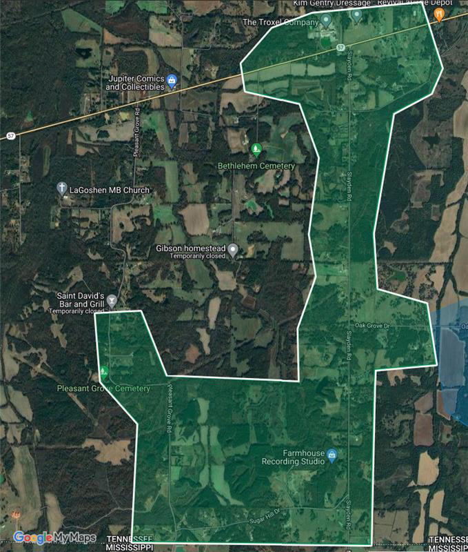 Arena Rd, Bateman Rd, Bobbitt Rd, Burch Dr, Canomera Cv, Canonero Cv, Carryback Cv, Cedar Creek Way, Churchill Downs Lp, Citation Cove, Citation Cv, Cotton Way, Dove Rd, Duscoe Rd, Duscose Rd, Early Grove Rd, Franklin Rd, Glover Way, Hwy 57, Industrial Dr, Industrial Park St, King Dr, Mckinstry Rd, Mill Pond Rd, Nuber Way, Oak Grove Dr, Oak Grove Rd, Old State Line Dr, Old State Line Rd, Old Stateline Dr, Old Stateline Rd, Pleasant Grove Rd, Poole Dr, Poole Rd, Price Rd, Quail Call Rd, Sales Dr, Sides Dr, Slayden Dr, Slayden Rd, Spring Way, Sugar Hill Dr, Sugar Hill Rd, Watkins Dr, Watkins Rd, Wilberry Way, Wilburn Rd, Yager Dr and Yager Rd