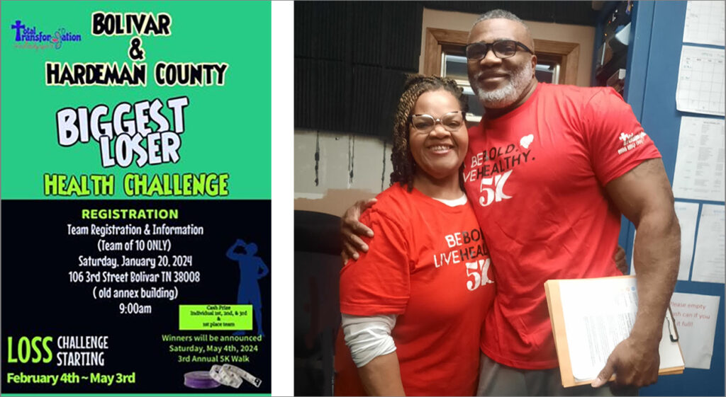 Are you ready for the biggest weight lost challenge in Hardeman County? Melissa McTizic of Total Transformation and Antonio Parham want you to join them for the Bolivar & Hardeman County Biggest Loser Health Challenge. The goal of the 90-day health and weight loss challenge is to raise awareness of the importance of physical activity and nutrition, and to promote healthier lifestyles for members of our community.