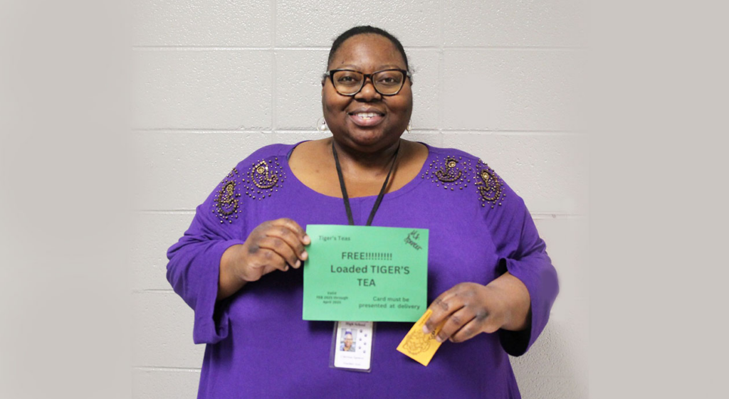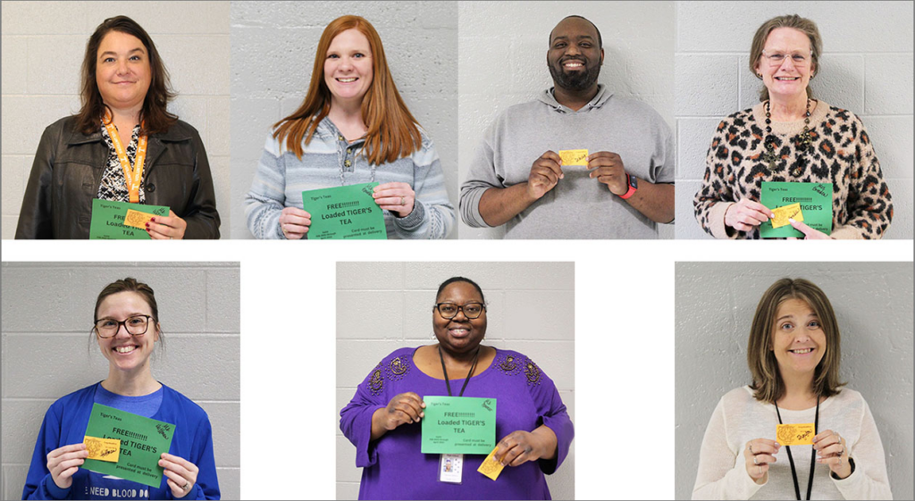 Just as their peers, who were recognized during the first nine weeks in October, they received a gift of a free loaded “Tiger’s Tea”, compliments from the BCHS Work-Based Learning classes. Mr. Dickens and Ms. Ferguson shared the Loaded Tiger Teas are a school-based enterprise of the self- contained classes, which they both teach. Because they work closely with the students and regularly assist with preparing the Tiger’s Tea, both will be gifted an alternative reward.