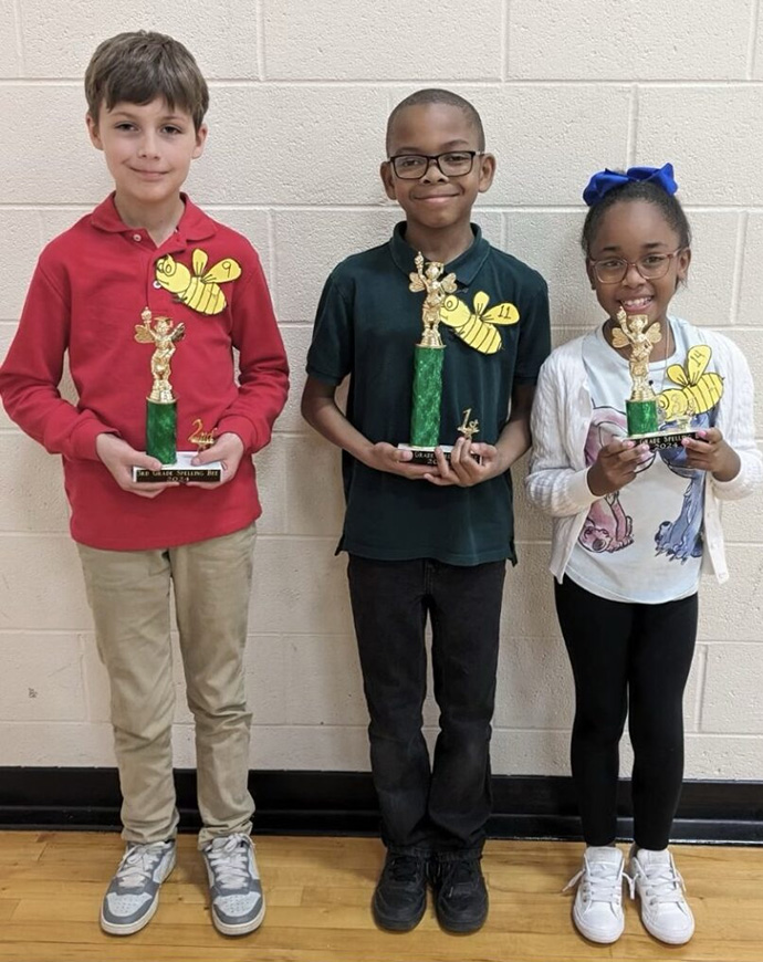 At the end of the evening, three spellers were awarded trophies for their outstanding spelling skills. The 1st Place winner was Quenelius King; 2nd Place winner was Brayden Jeter; and the 3rd Place winner was Addison Scott.