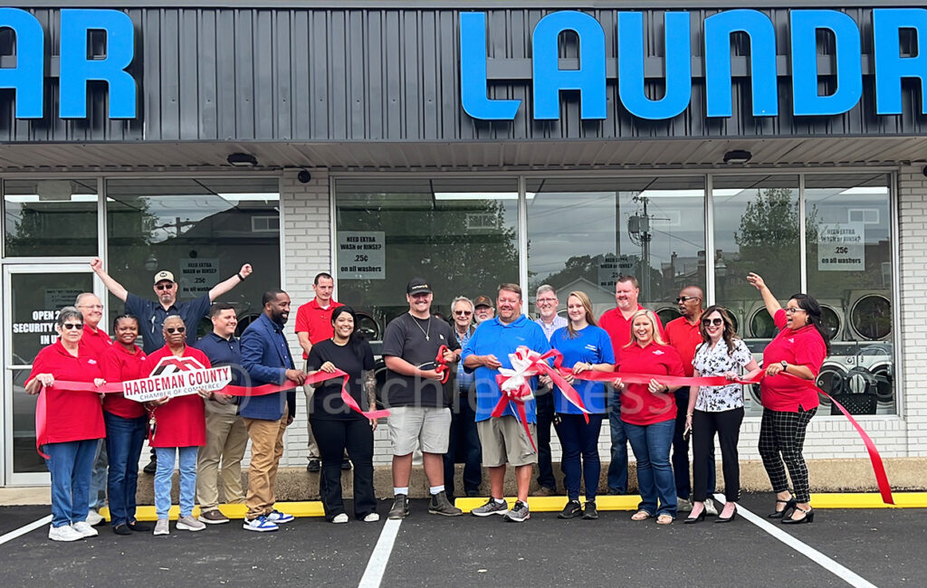 Bolivar and Hardeman County residents now have a new option for washing and drying their clothes with the opening of the Bolivar Laundromat that is located in Bolivar, 110 South Washington Street, 38008, across the street from the Farmers Market Pavilion. Dale Burns and his son, Dalton, who will manage the laundromat, were on hand and joined by family and friends on Monday, April 29, 2024, for the ribbon cutting ceremony.