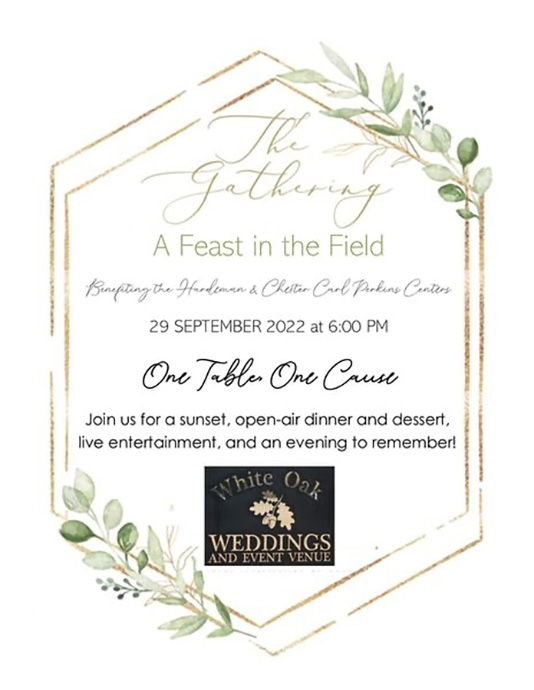 The Carl Perkins Center of Hardeman County invites you to join them for a Feast in the Field fundraiser dinner on September 29, 2022, at 6 p.m.