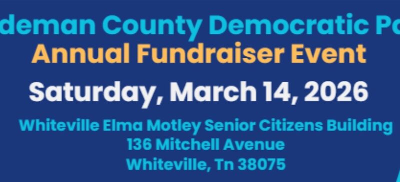 Read MoreThe Hardeman County Democratic Party will host its Annual Fundraiser on Saturday, March 14, 2026, at 6:00 p.m. The event will be held