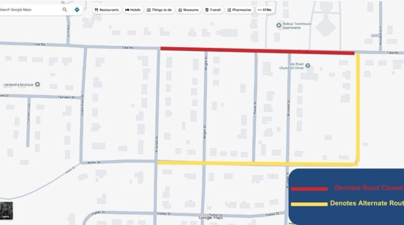 Read MoreUpdate: The road work and closure on Tate Road has been extended through Friday, March 20, 2026. The City of