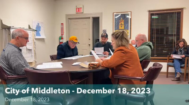 Read MoreThe City of Middleton met for its monthly meeting on Monday, December 18, 2023. Mayor Evan Mott, City Administrator Jimmy