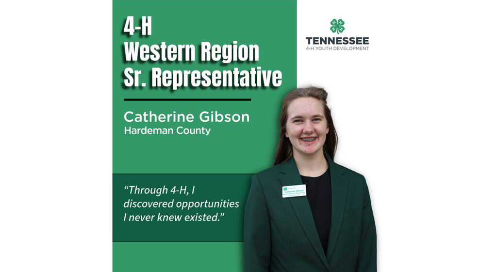 Hardeman County’s Catherine Gibson will serve on the 2025/2026 Tennessee 4-H State Council as the Western Region Senior Representative. In 2024/2025, Catherine served as a Junior Representative and has been a 4-H member since she was in the fourth grade.