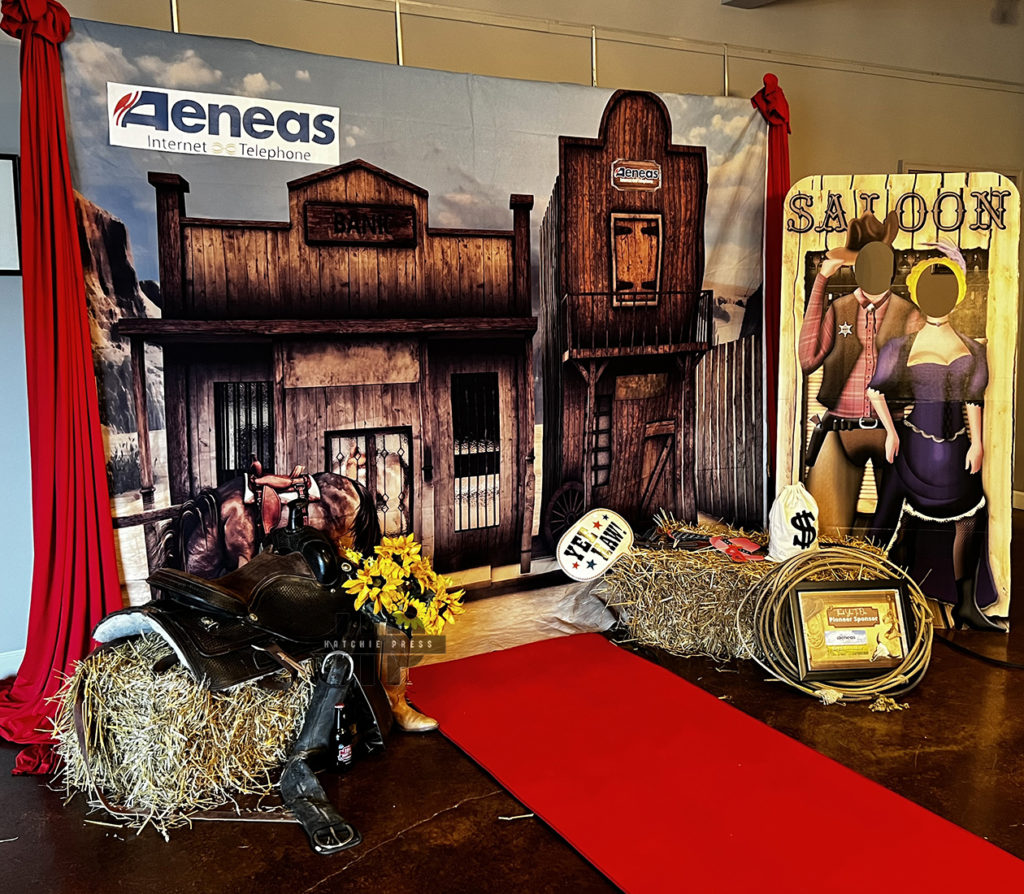 Sponsors of the event decorated tables in western theme while promoting their businesses with promotional items and product samples. Attendees captured memories of the evening in the photo booth.