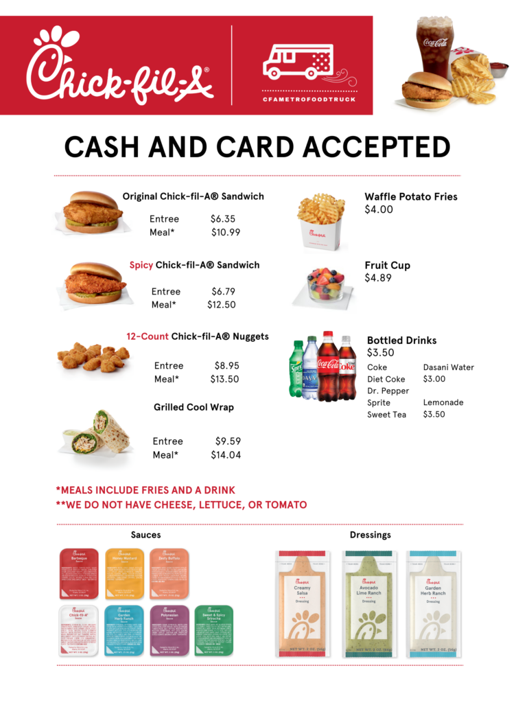 You may find the Chick-fil-A MetroCenter Food Truck menu and pricing below.