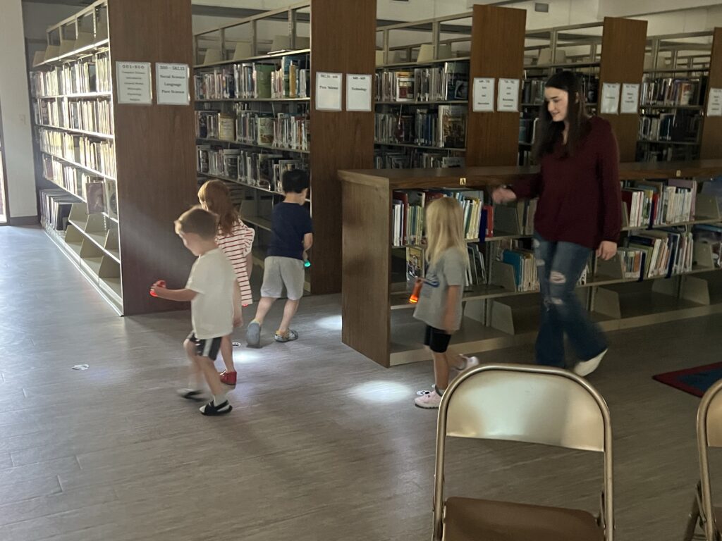 Librarian Hannah Thompson read Henry Mudge and the Starry Night while ASL interpreter Brittney Willis interpreted the book in sign language. Guest reader Shelley Taylor read One Dog Canoe and Commissioner Weems led “Twinkle, Twinkle Little Star” by the camp fire. After story-time, the children used flashlights to hunt bears and found a snack of Teddy Grahams waiting for them.
