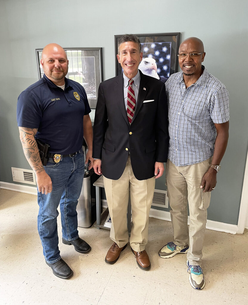 Pictured (l to r): Town of Whiteville Police Chief Ben Davis, Congressman David Kustoff, and Town of Whiteville Mayor Gene Bowden.