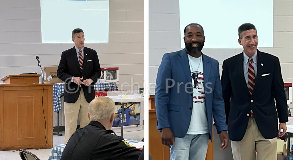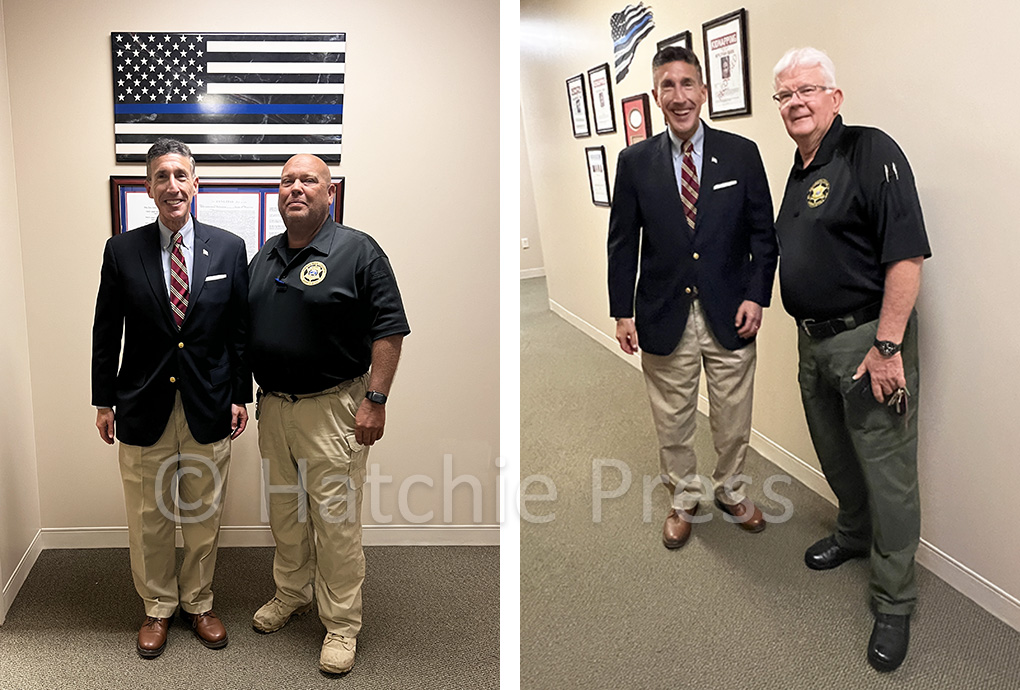 Pictured (l to r): Congressman David Kustoff and Hardeman County Sheriff John Doolen (left picture), and Congressman David Kustoff, and Grand Junction Mayor and Hardeman County Sheriff’s Deputy Curtis Lane (right picture).