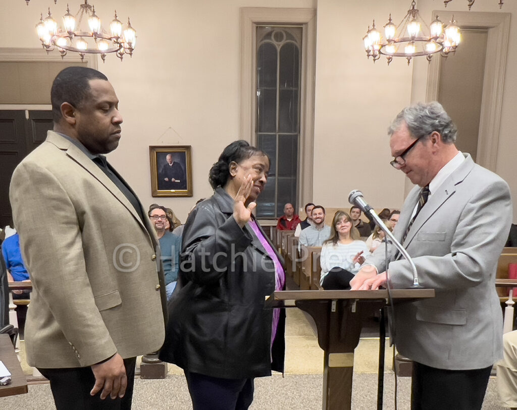 Mayor Pulse took nominations from the floor for the District 1, Position 3 Commission seat. Commissioner Jackie Sain nominated Mamie Polk, who is the widow of former Commissioner Polk. The nomination was seconded by Commissioner Chandra Lake. No other nominations were made. Mrs. Polk was approved unanimously by a roll call vote of the County Commission. She was immediately sworn in by Judge Boyette Denton and began serving in the position. (Watch at the 5:00 minute mark in the video)