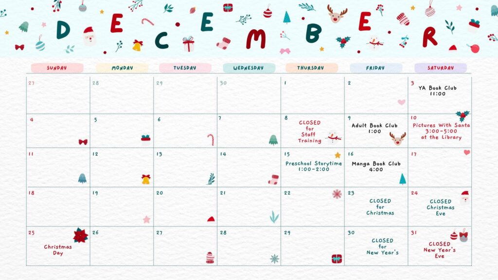 - The Grand Junction Library will be closed the week between Christmas and New Years Day.