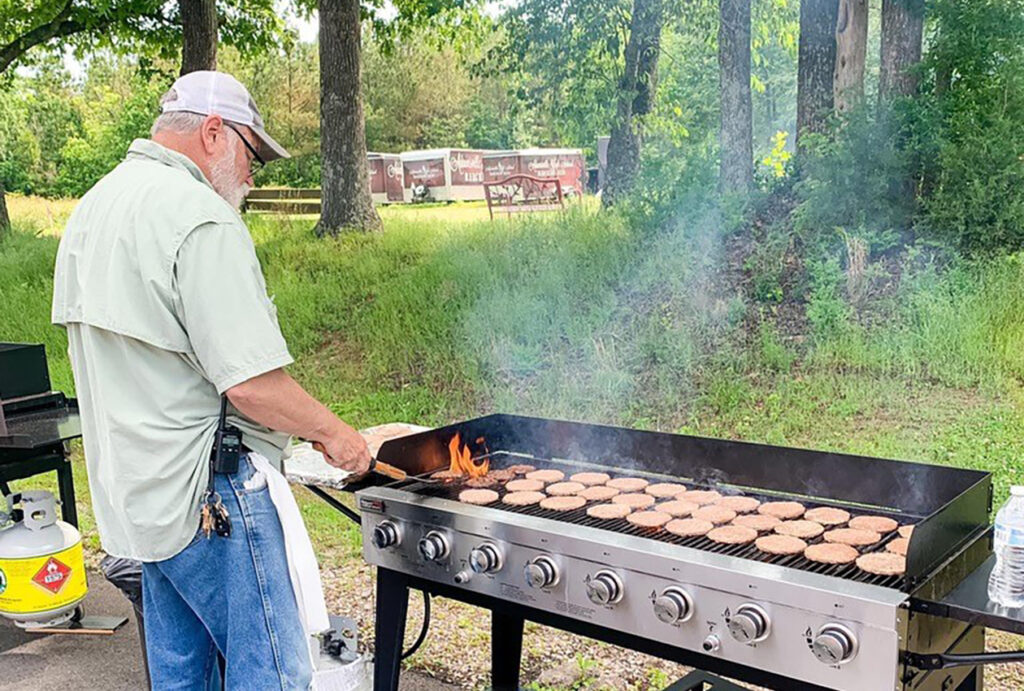 Adamsville High School Principal Steve Killingsworth grills burgers for his students who celebrated an entire school year without a fight.
