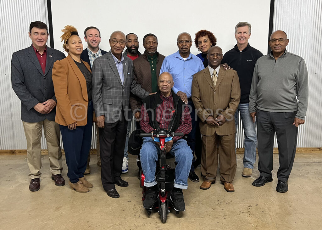 Current and past elected officials came out to celebrate Viscen Charles Morrow. Pictured (l to r): Hardeman County Mayor Todd Pulse, Commissioner Bethany Miller, Assessor of Property Josh Pulse, Representative Johnny Shaw, Bolivar Mayor Julian McTizic, Commissioner Cory Bufford, Viscen Charles Morrow, Whiteville Mayor Gene Bowden, Commissioner Chandra Lake, Whiteville Alderman Jessie Giles, Commissioner Jackie Sain, and former Hardeman County Mayor Willie Spencer.