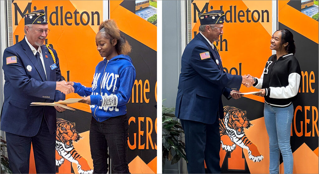 Four Middleton High School (MHS) students will participate in American Legion programs, which will be held on the campus of Lipscomb University in Nashville. Harmony Bell and Adriauna Jones will attend Girls State and Cody Brinson and Hunter Lipford will attend Boys State representing MHS as delegates. During the one week program, the students will have the opportunity to learn about government, civic responsibility, love of God and country, and shaping future leaders.