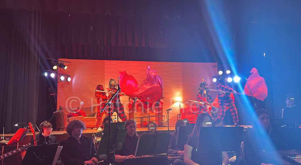 More than 40 students from the music department participated in the production. The full cast, along with the color guard, included the BCHS choir, band, and percussion students. Although the band’s participation was as background providing the transitions from scene to scene, it partnered with the choir playing familiar Christmas favorites that included “Carol of the Bells” and “God Rest Ye Merry Gentlemen”. Student Reece McMahan took to the stage as a vocal and clarinet soloist for “Mary Did You Know”. The BCHS drumline also had its time on the stage and the color guard did perform as a squad. Griggs who has a degree in music education and has performed professionally for several years, also performed a couple of solos on the piano.