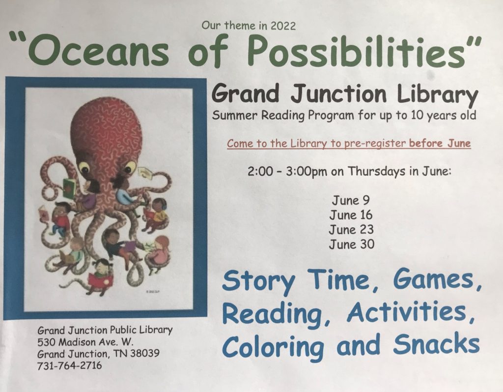 The Grand Junction Library kicked off its Summer Reading Program last week. Special guest, Mrs. Pat, brought her rescue Dalmatian and taught bite prevention. Library Director, Diane Callahan, reported that it was a great day with nearly 20 people in attendance. The Summer Reading Program will continue each Thursday in June from 2 p.m. – 3 p.m. The Library is located at 530 Madison Avenue West, Grand Junction. For more information, the library can be reached at (731) 764-2716.