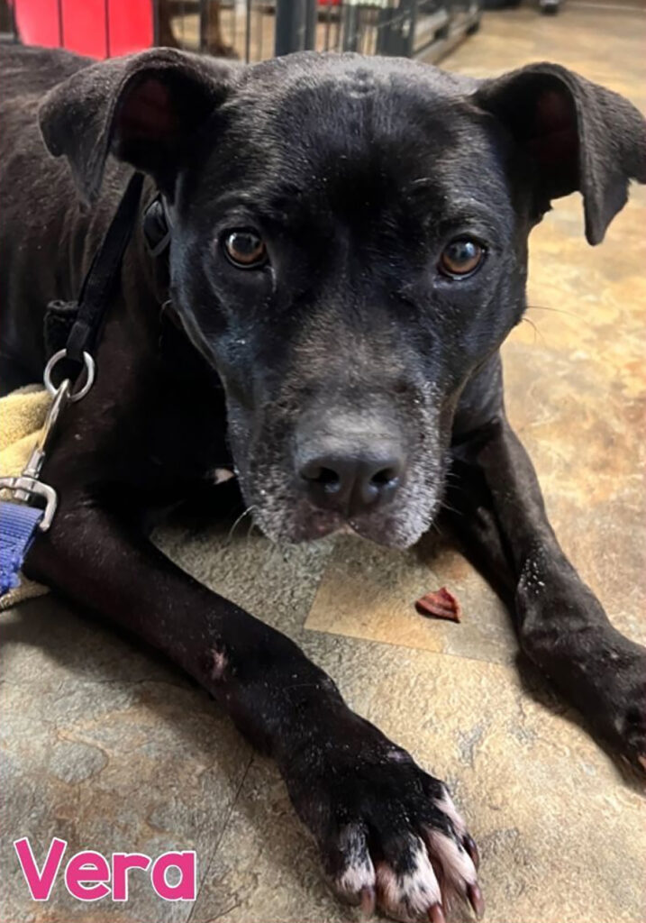 Vera is timid with new people, but warms up with treats and when spoken to nicely. This darling girl needs a new chance for a better life.