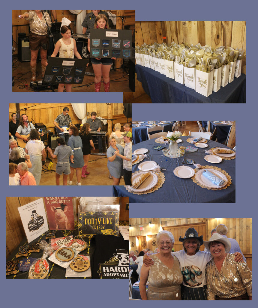 Lovers and supporters of furry, four-pawed friends attended the sold out Hardeman Adoptable Animals (HAA) Denim & Diamonds diner and dance fundraiser which was held at Robin’s Nest Event Venue in Toone, Tennessee, on Saturday, August 16, 2025. The funds raised during the evening will go towards supporting the homeless dogs in the shelter with medical care, dog food, cleaning supplies, and general maintenance. A portion of the proceeds also goes to Kitten Kapers, the HAA’s partner in rehoming homeless cats.