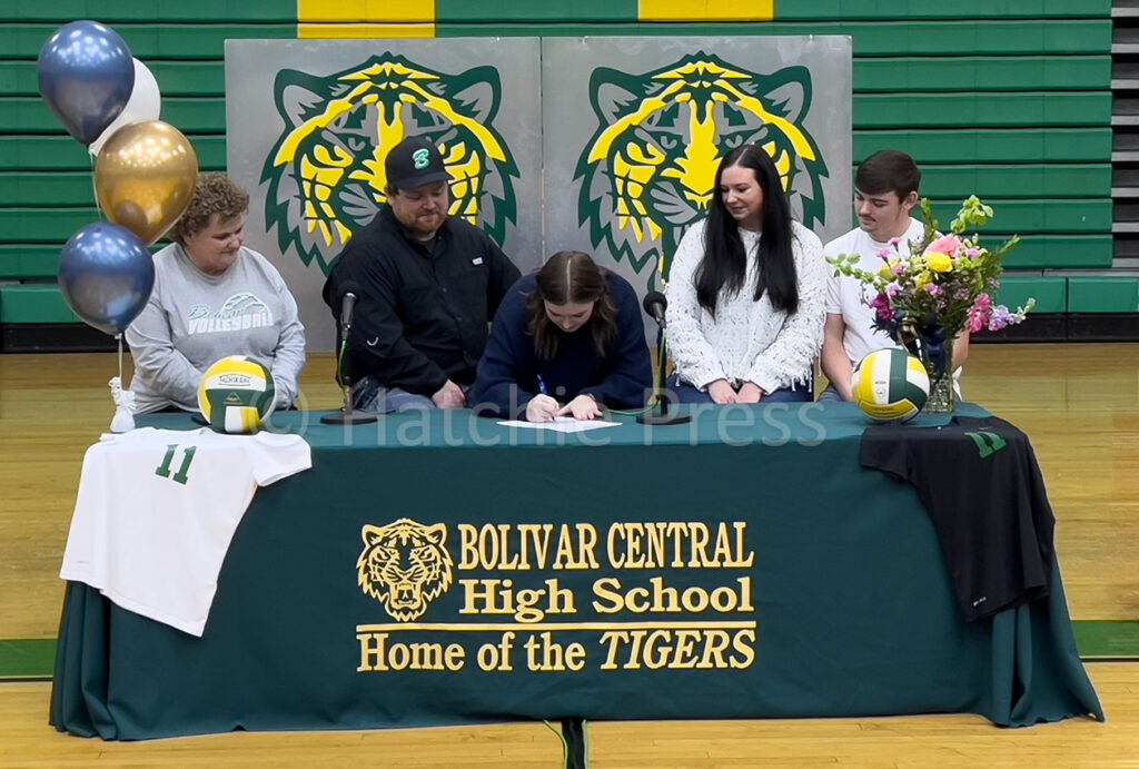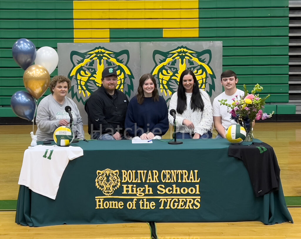 Bolivar Central High School’s Hannah King signed on Wednesday, January 24, 2024, to join the Champion Christian College (CCC) volleyball team to play the sport she loves. When Hannah graduates in May 2024, she will move from being a BCHS Lady Tiger and suit up next season in uniform as a CCC Lady Tiger. Hannah is the first volleyball player from BCHS and Bolivar to sign to play at a collegiate level.