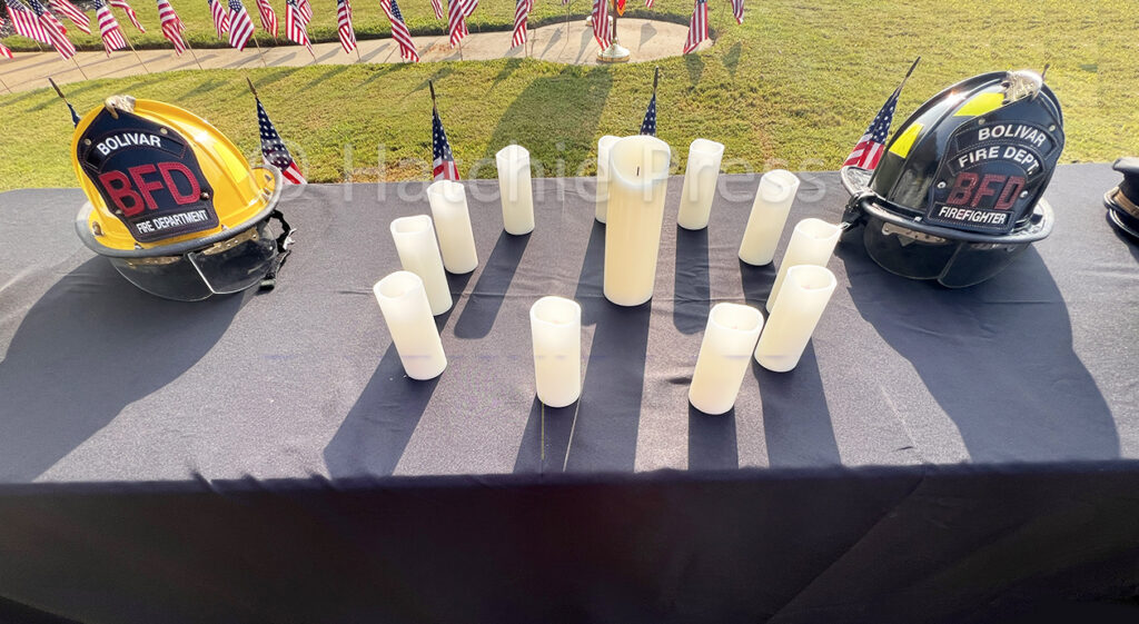 City of Bolivar Mayor Julian McTizic and Hardeman County Mayor Todd Pulse also expressed their appreciation for first responders. Community representatives participated in a candle lighting acknowledging the lives lost on September 11, 2001: