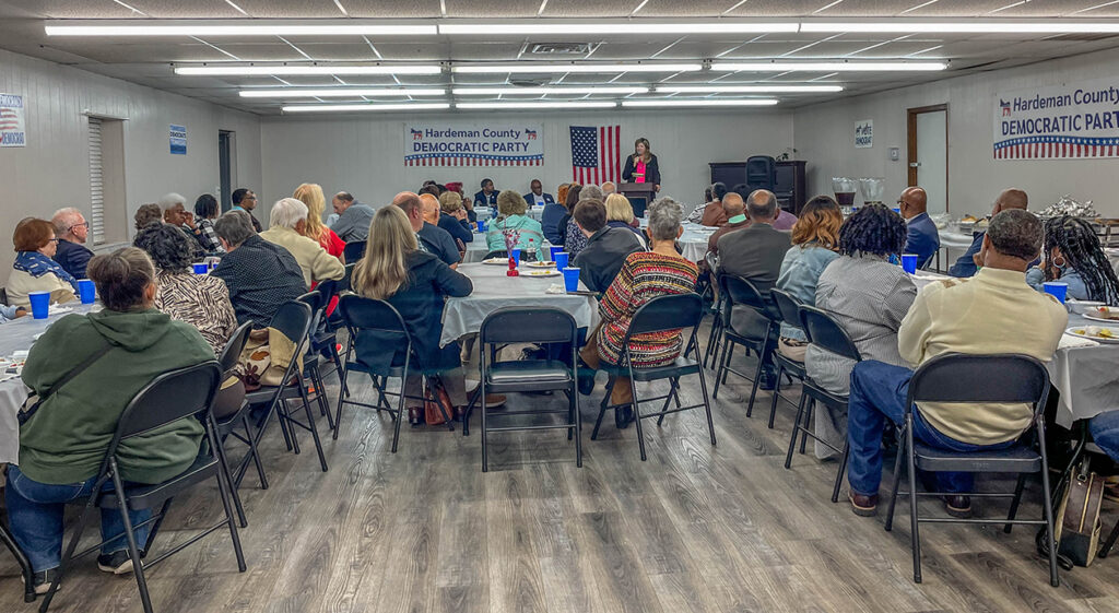 The Hardeman County Democratic Party annual fundraiser was held on Friday, November 17, 2023, in Whiteville with featured guest speakers Representative Gloria Johnson of “Tennessee 3” fame and Hendrell Remus, Chair of the Tennessee Democratic Party (TNDP).