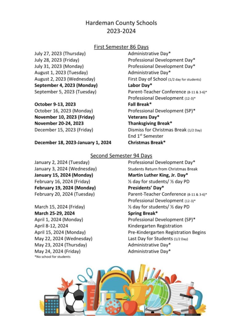 The Hardeman County School Board unanimously voted in acceptance of the proposed calendar for the 2023-2024 school year.