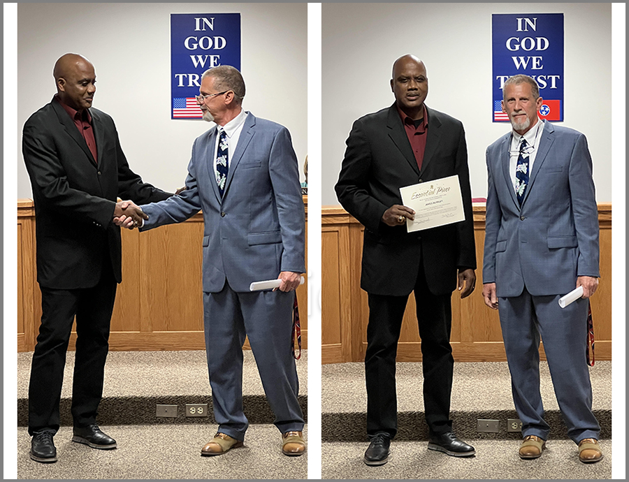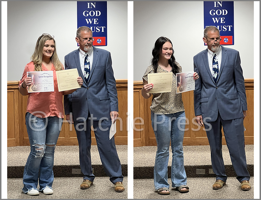 Middleton High School (MHS) Students, Madeline Coupe and Alexa Pitzer, and MHS Basketball Coach James Burkley, were among those recognized for their achievements at the April 13, 2023, meeting of the Hardeman County Board of Education.