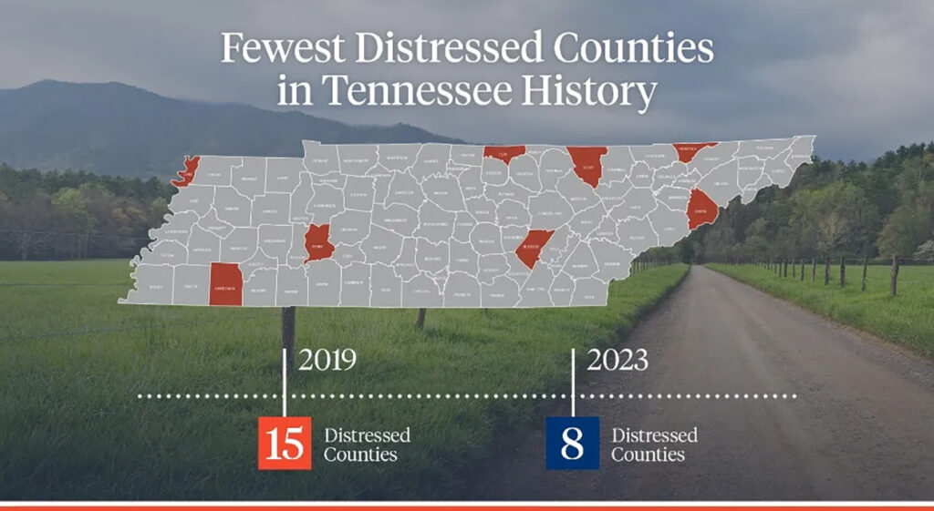 Tennessee Governor Bill Lee announced the number of distressed counties in the state has reduced to eight, the fewest in Tennessee history, marking a significant milestone in the Lee administration’s mission to accelerate the transformation of rural Tennessee. {read article}