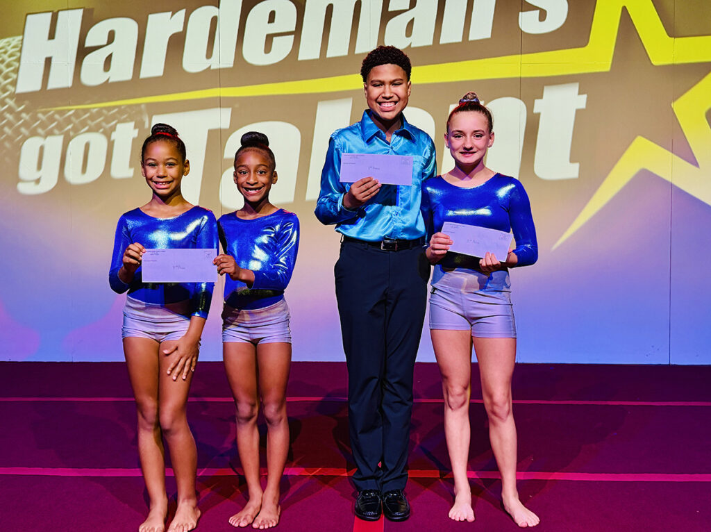 Braxton Gibson sang “Who’s Loving You” and won $300. Whitley Reed performed a gymnastics/dance solo to the song “The Climb” and won $200. Ariana Tate and TraMyhia Armour performed a gymnastics duet to the song “Made You Look” and won $100. Whitley, Ariana, and TraMyhia are all SPARK Gymnastics students. Ms. Bergloff shared Whitley is a recent finalist in the Mid-South Fair Youth Talent Contest Jr. Division.