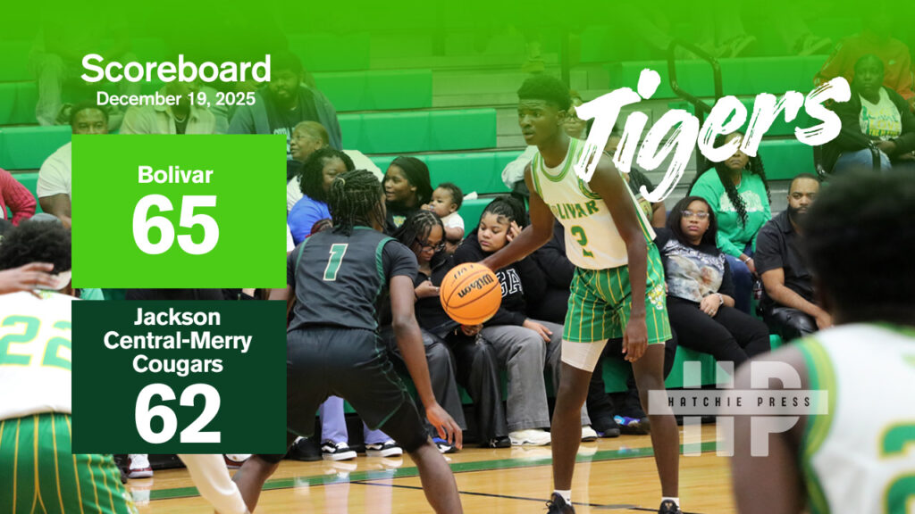 The Bolivar Central High School Tigers played the Jackson Central-Merry Cougars and won with a pass from Jeremiah Woody (#22) to Jermicheal Neely (#25), who ended the 62-62 tie with a three-point shot. { see video }