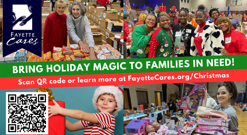 This Christmas, you, along with your school, club, church, or business, can become a real-life Santa by adopting a child from the Fayette Cares Angel Tree or donating food to help hundreds of families. { read article }