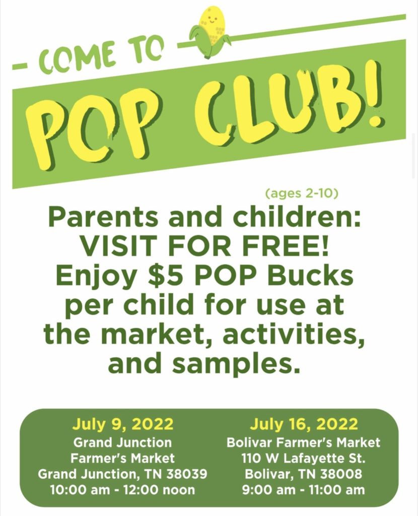 Visit the Pop Club at the Grand Junction Farmers Market located at the Laffayette Cotton Gin, 216 Highway 57 East, Grand Junction.