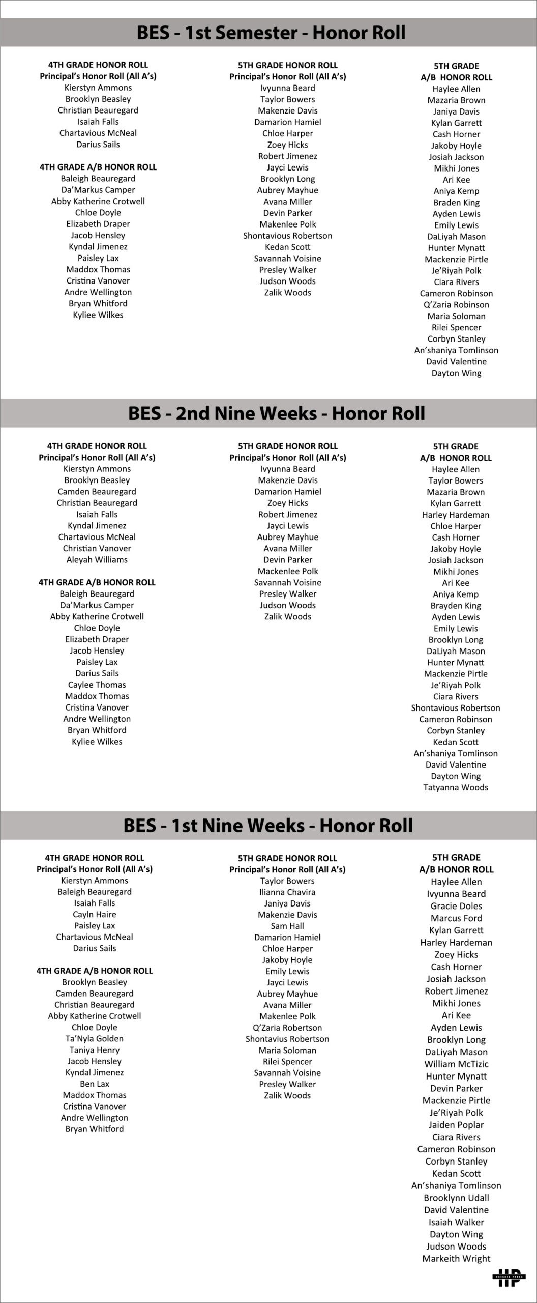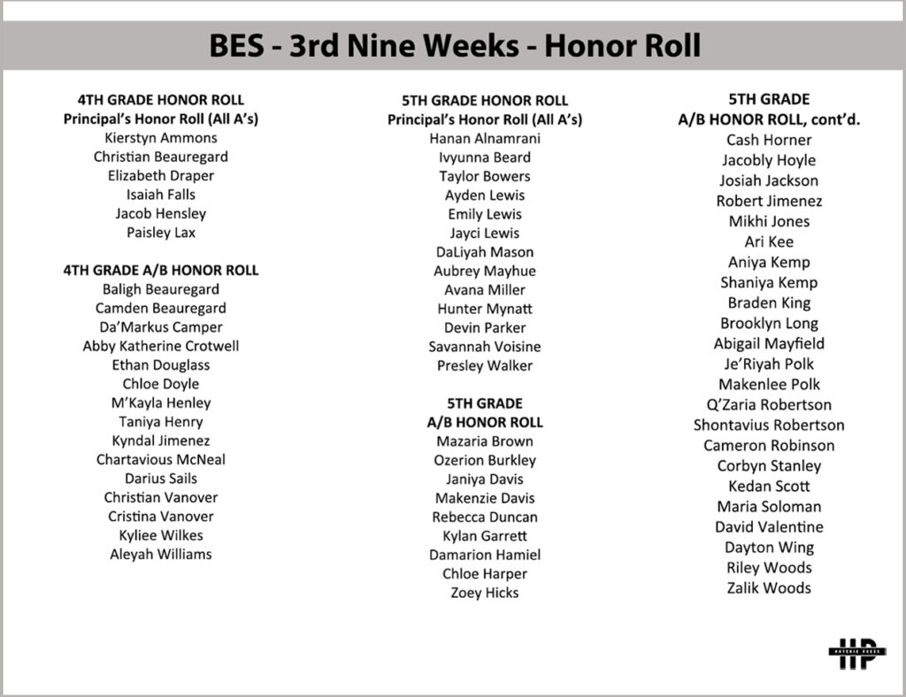 Honor Roll: Bolivar Elementary School, 2022/2023