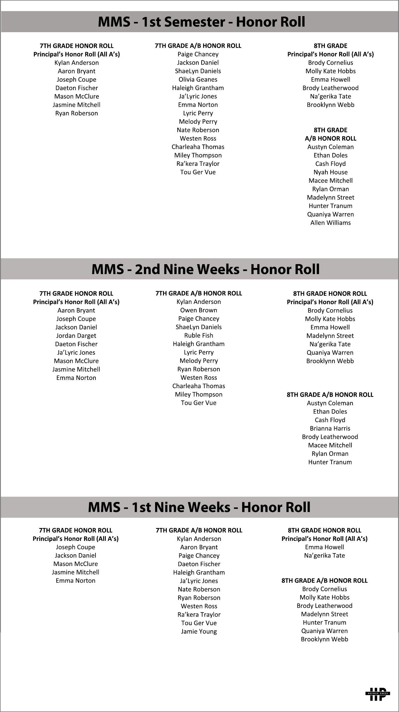 11/08/2022 HC honor roll,  honor roll,  MMS