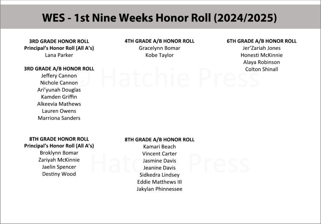 Honor Roll: Whiteville Elementary School, 2024/2025