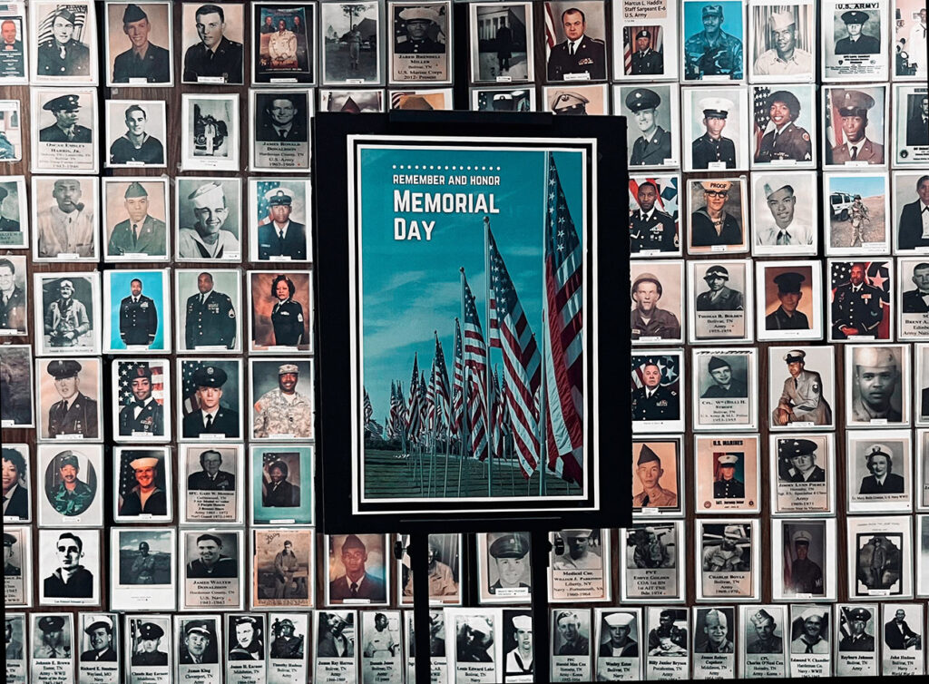 The Bolivar-Hardeman County Library “Wall of Honor” is a collage of servicemen and servicewomen from Hardeman County who served and gave in the name of country, so Americans can have the freedoms they now enjoy.