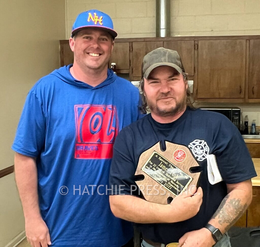 Fire Chief Russ Kelly presented Captain Tosh with a plaque in recognition of his dedicated service to the town.