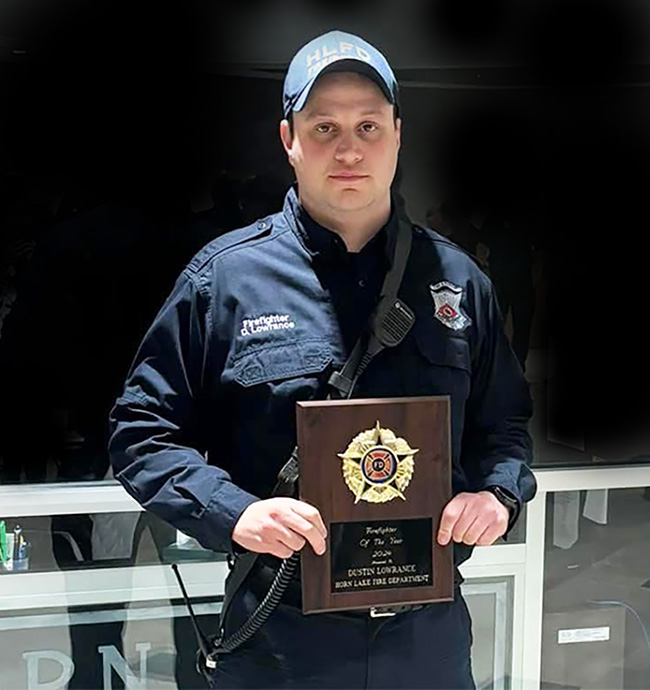 Dustin Lawrence, who is the fire chief of the Town of Hornsby, was recognized as Horn Lake Fire Department Firefighter of the Year where he is employed as a firefighter paramedic. He has worked with the Horn Lake Fire Department for almost three years and as the Hornsby fire chief for about one year.