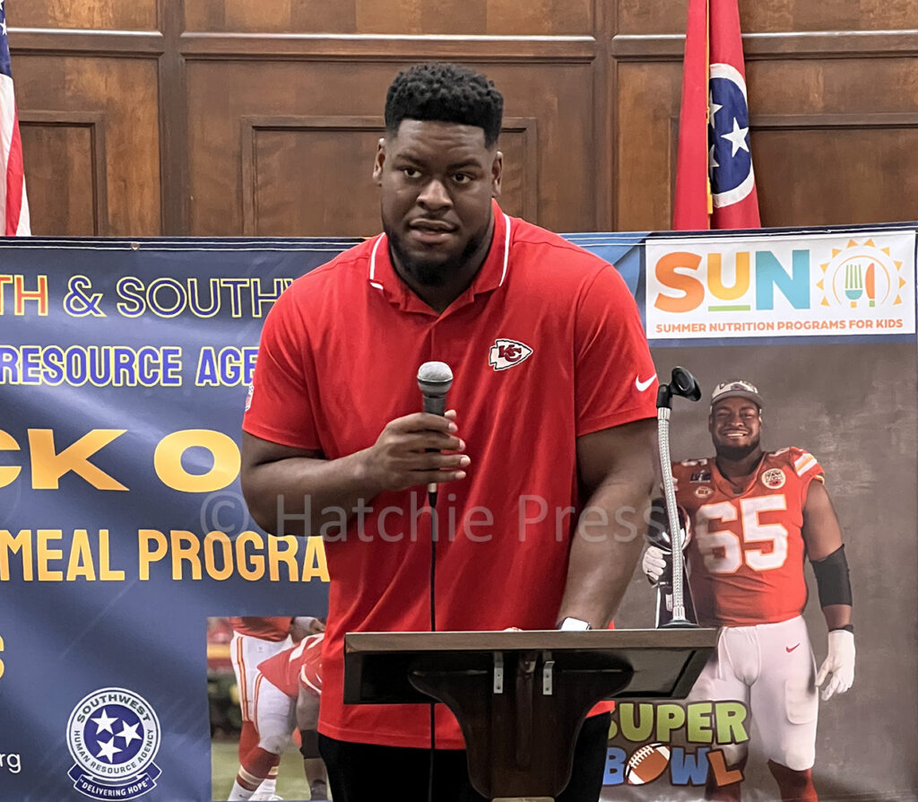 Kansas City Chief Super Bowl champion Trey Smith made a stop in Hardeman County to kick off the free meal SUN programs.