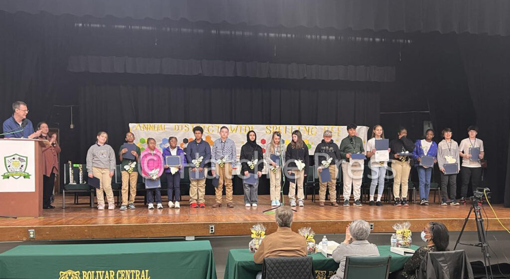 The schools represented on Monday, January 27, 2025, were Bolivar Elementary School (BES), Bolivar Middle School (BMS), Hornsby Elementary School (HES), Grand Junction Elementary School (GJES), Middleton Elementary School (MES), Middleton Middle School (MMS), Toone Elementary School (TES), and Whiteville Elementary School (WES). Admittedly, several of the students were nervous about taking the stage for the spelling bee. Hardeman County Schools Director Dr. Christy Smith shared encouraging words emphasizing how proud everyone was of all of them for making it to this level of competition and being able to present on the stage. Before the Spelling Bee began, the 17 students completed a practice round, which helped them become familiar with protocol and more comfortable for the competition.