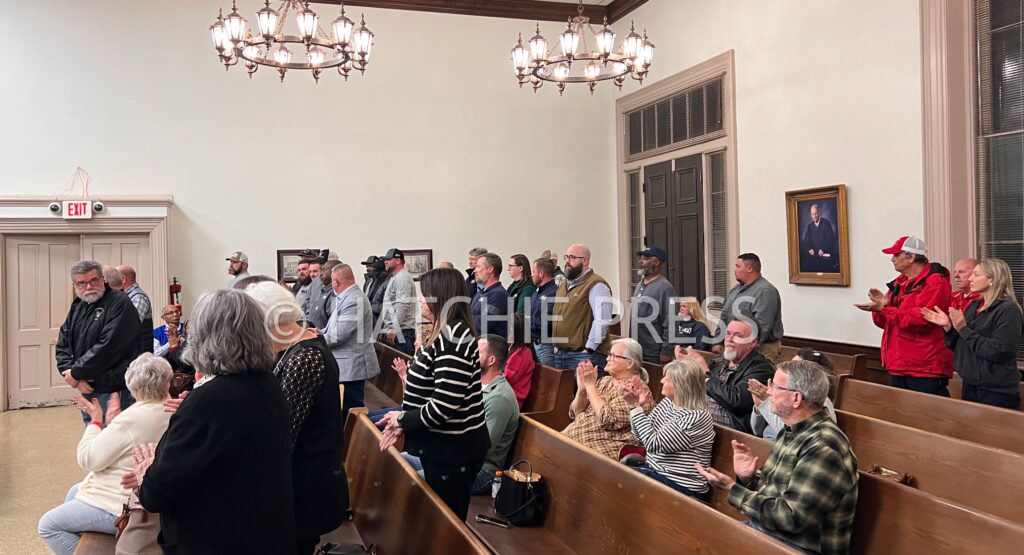 Those who served during the ice storm, stood and were recognized at the County Commission meeting.