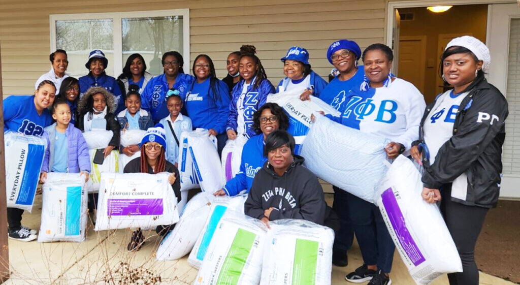 Members of Zeta Phi Beta donated 28 pillows to the Fayette Cares homeless shelter in recognition of Martin Luther King Jr. National Day of Service.