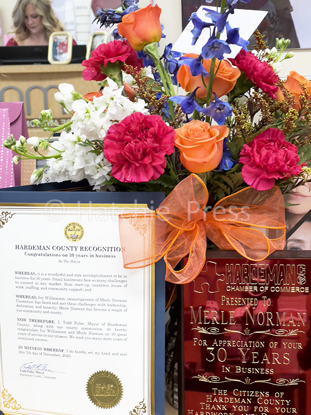 Ivy Williamson of Merle Norman Cosmetics celebrated 30 years in business on Friday, November 7, 2025, with a ribbon cutting ceremony held by the Hardeman County Chamber of Commerce. Merle Norman Cosmetics, known as Bolivar’s premier cosmetic studio, has been the go-to location for people wanting to look their best at all times.