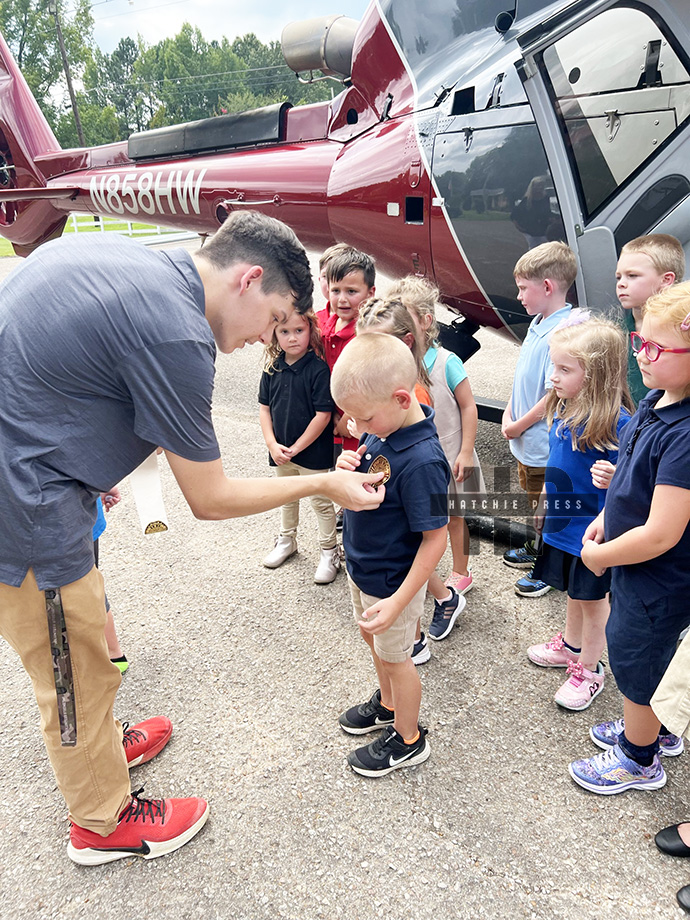 Kindergarteners from Middleton Elementary School (MES) took a field trip to join in the grand opening festivities of the new BlueCross Healthy Place at Middleton City Park on Monday, August 15, 2022. A Hospital Wing helicopter made a grand entry landing before the ribbon cutting.