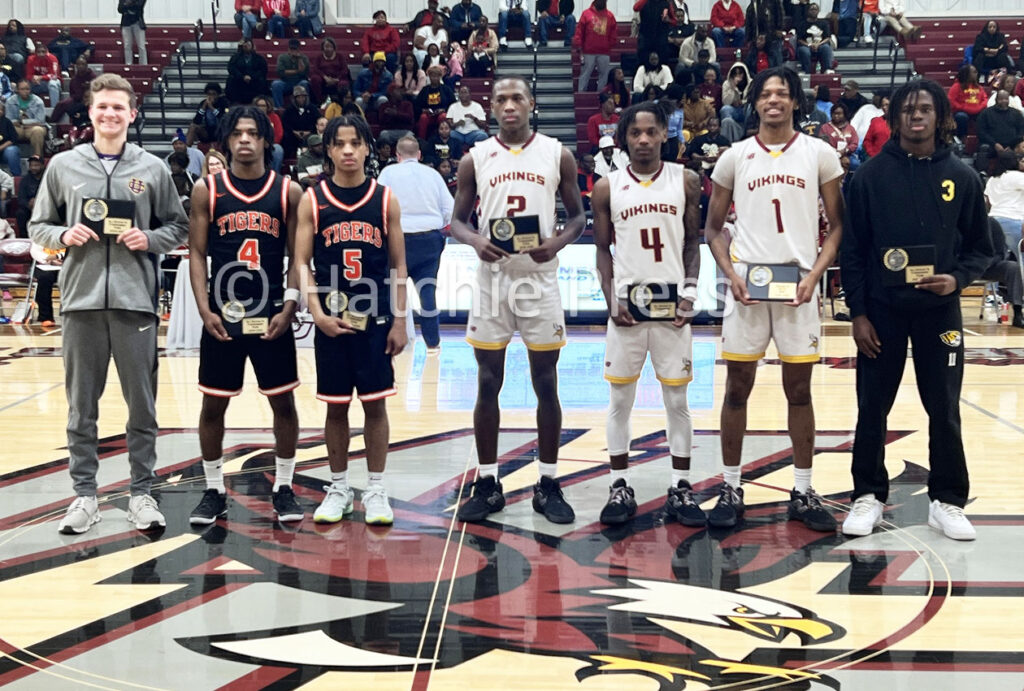 Other All-Region 7A Tournament Team players, who were recognized were Darion Taylor (#2), Kendrick Taylor (#1 – MVP of the tournament) and Jeffrey Patterson (#4) from Humboldt High School, Khadon Piphus (#3) from Halls High School, and Ben Kahl (#2) from Union City High School.