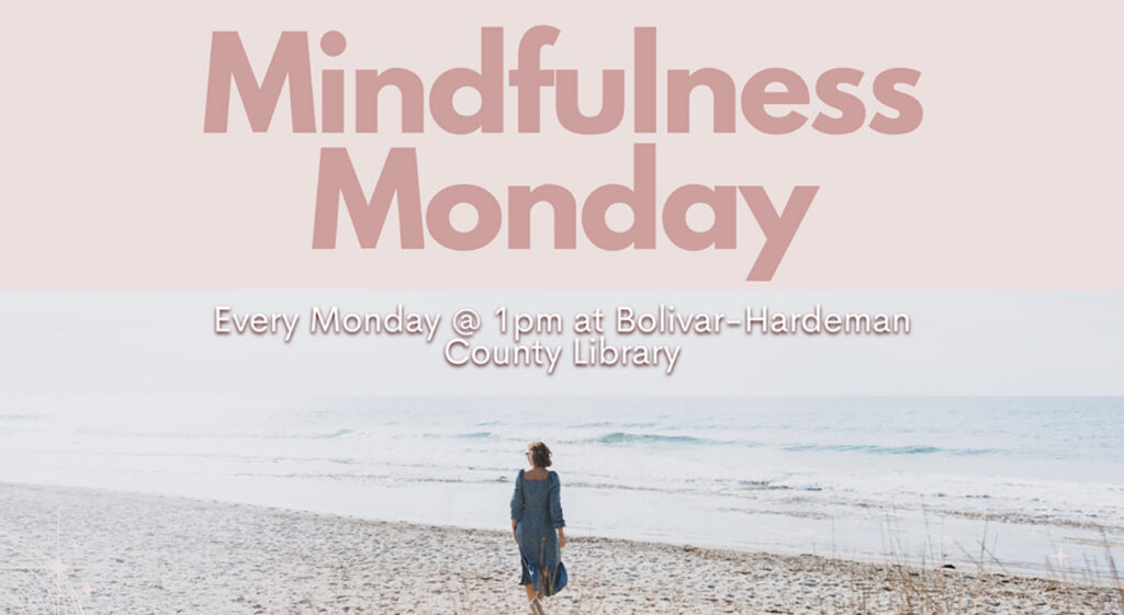 The Bolivar-Hardeman County Library invites you to its brand-new program: Mindfulness Mondays! This three-session program will take place every Monday at 1 p.m. in January, beginning January 5, 2026 (except January 19, closed for Martin Luther King Jr. Day.)